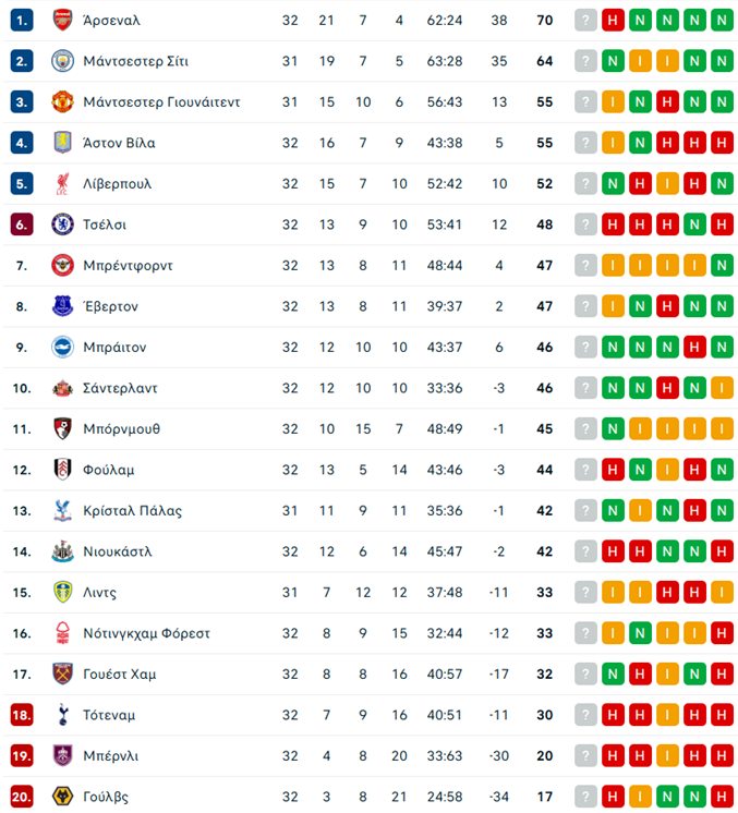 Τα αποτελέσματα και το υπόλοιπο πρόγραμμα της 32ης αγωνιστικής