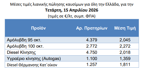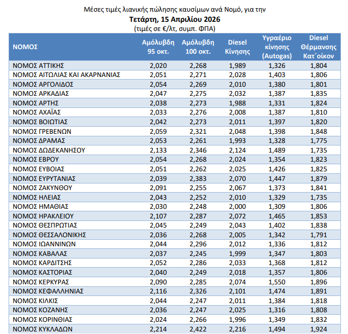 Η κατάσταση στα πρατήρια καυσίμων έχει αρχίσει να θυμίζει εφιάλτη για την τσέπη του μέσου οδηγού. Τα τελευταία στοιχεία από την αγορά (Τετάρτη, 15 Απριλίου) επιβεβαιώνουν αυτό που όλοι βλέπουμε στις ταμπέλες των βενζινάδικων… το φράγμα των 2 ευρώ αποτελεί πλέον το νέο «κανονικό».