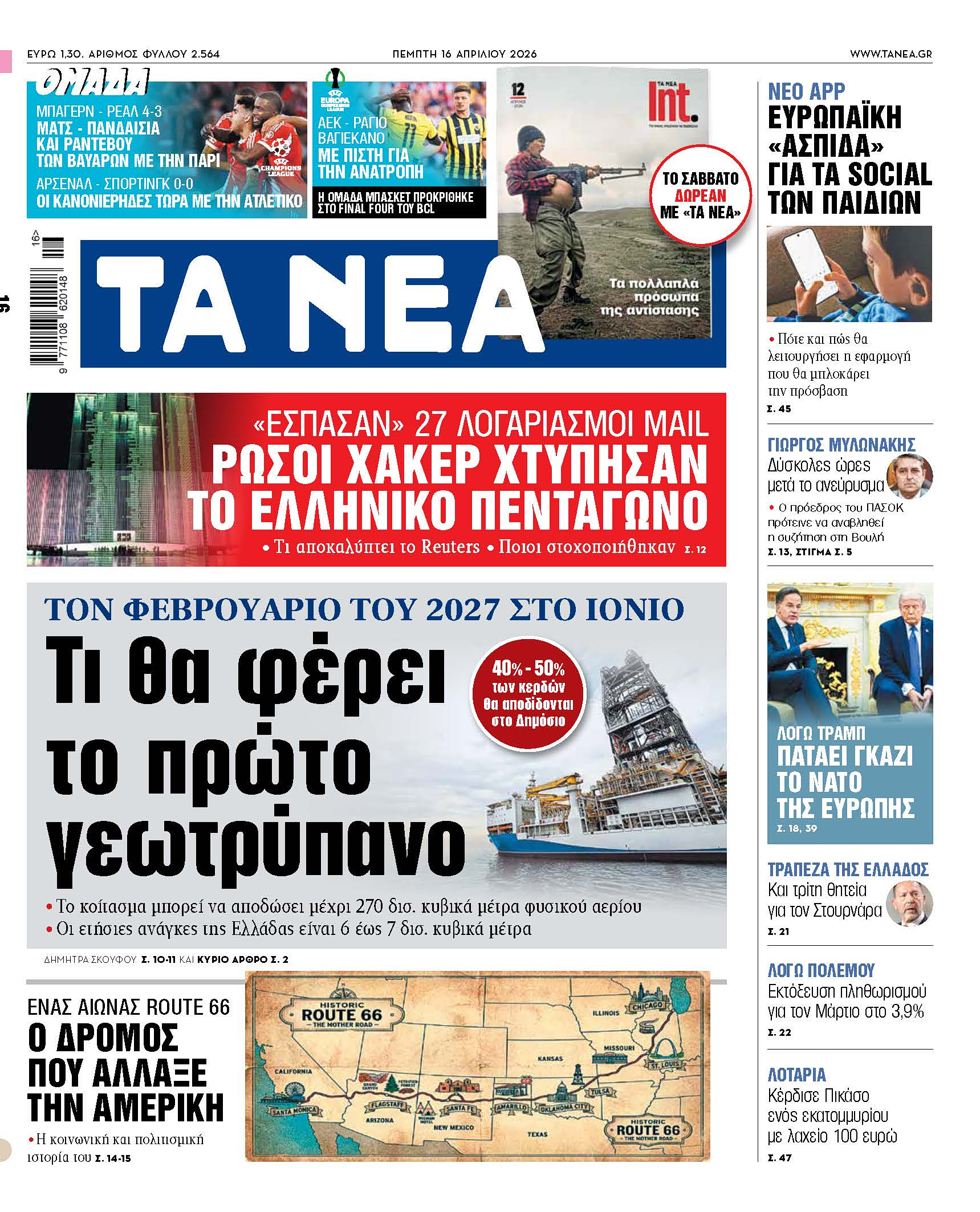 Διαβάστε στα «ΝΕΑ» της Πέμπτης: Τι θα φέρει το πρώτο γεωτρύπανο