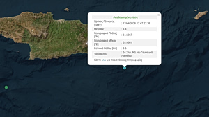 Σεισμός μεγέθους 3,8 βαθμών της κλίμακας Ρίχτερ σημειώθηκε στo Λασίθι το μεσημέρι της Παρασκευής (17/4).