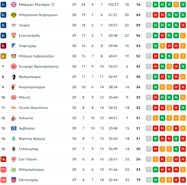 Η βαθμολογία της Bundesliga