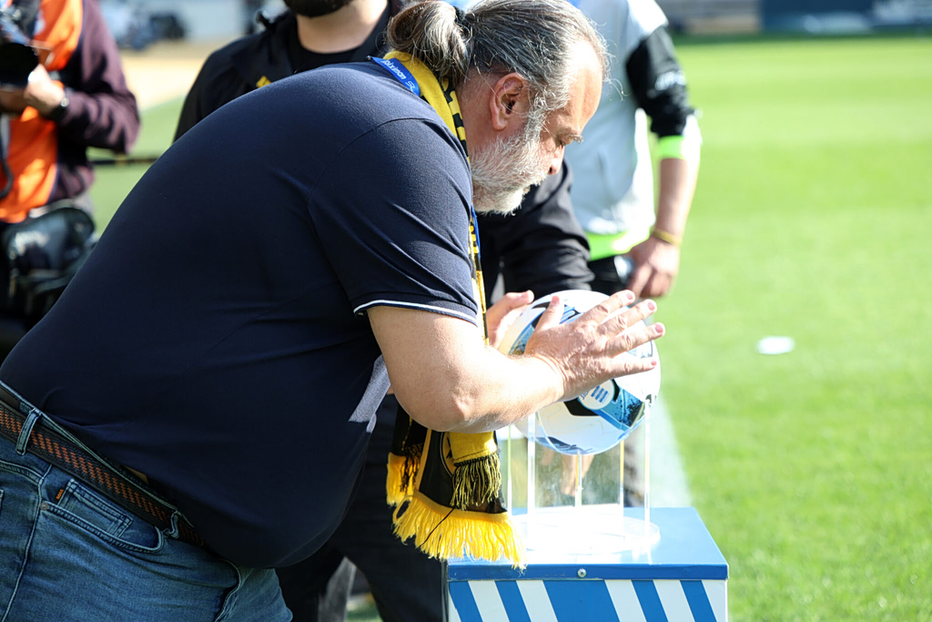 Ο Μάριος Ηλιόπουλος βρέθηκε στον αγωνιστικό χώρο της Allwyn Arena πριν από τη σέντρα και όπως απαθανάτισε ο φωτογραφικός φακός, φίλησε την μπάλα του αγώνα, σε μια συμβολική κίνηση που ερμηνεύτηκε ως γούρι ενόψει της κρίσιμης αναμέτρησης.