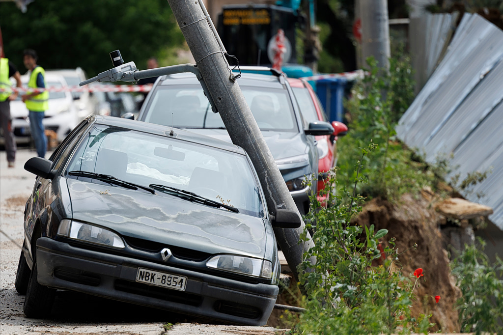 Καθίζηση στην περιοχή των πρώην Στάβλων της Παπάφη, έπειτα από διαρροή αγωγού ύδρευσης, Θεσσαλονίκη, 20 Απριλίου 2026.