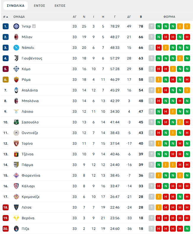 Το πρόγραμμα και τα αποτελέσματα της 33ης αγωνιστικής