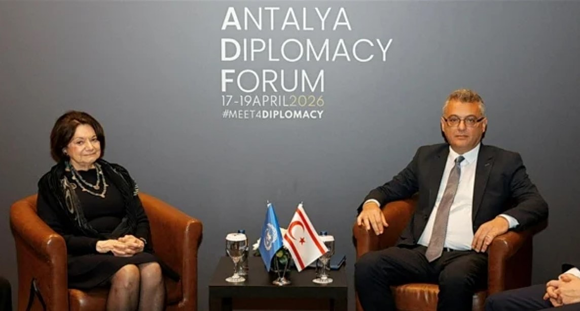 Καμία αλλαγή στην πάγια θέση των Ηνωμένων Εθνών για το Κυπριακό δεν υποδηλώνει η φωτογραφία από τη συνάντηση της Αναπληρώτριας Γενικής Γραμματέως του ΟΗΕ για Πολιτικές και Ειρηνευτικές Υποθέσεις Ρόζμαρι ΝτιΚάρλο με τον Τουρκοκύπριο ηγέτη, στο περιθώριο του Anatolia Diplomacy Forum στην Τουρκία, όπως διευκρίνισε ο Εκπρόσωπος του Γενικού Γραμματέα Στεφάν Ντουζαρίκ.