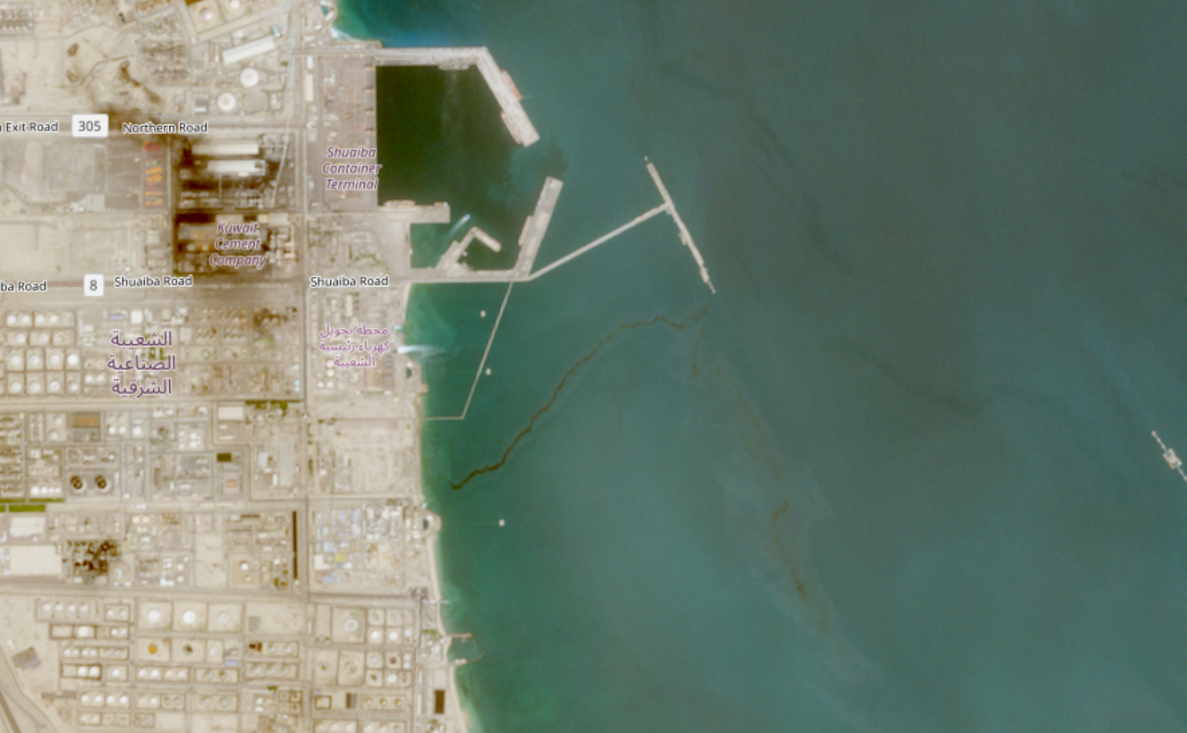 Στις 6 Απριλίου, δορυφόροι κατέγραψαν ίχνη πετρελαίου να εξέρχονται από το λιμάνι Σουάιμπα του Κουβέιτ, περίπου 50 χιλιόμετρα νότια της πρωτεύουσας, ως απόρροια των ιρανικών επιθέσεων σε ενεργειακές και πετροχημικές εγκαταστάσεις των χωρών του Κόλπου.