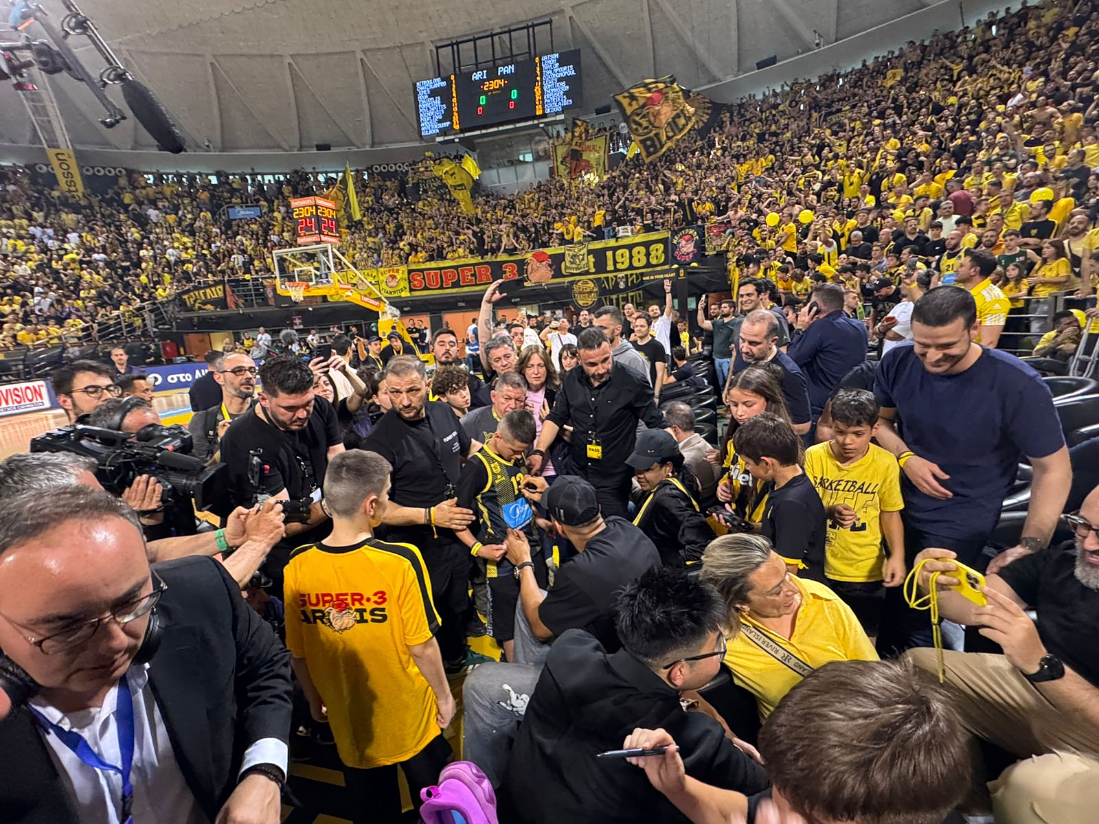 Μπάσκετ#Stoiximan GBL#Αντετοκούνμπο#Άρης#Νίκος Γκάλης#Πανιώνιος#Ρίτσαρντ ΣιαόΆρης – Πανιώνιος: Χαμός στο Αλεξάνδρειο, όλα κίτρινα για Γκάλη, Αντετοκούνμπο και Σιαο TANEA Newsroom 25/04/2026, 18:01 Share Share Facebook Twitter Linked in Messenger Whatsapp Telegram e-mail Τελευταία Νέα 19:24 Ποδόσφαιρο Μικρή ένταση πριν τον τελικό ΟΦΗ – ΠΑΟΚ μεταξύ οπαδών και Αστυνομίας 19:20 Μπάσκετ ΑΕΚ – Ολυμπιακός: Ο εκφωνητής της «Ένωσης» παντρεύτηκε και αμέσως πήγε στο γήπεδο ντυμένος γαμπρός (vid) 19:18 Ελλάδα Μαγευτικές εικόνες στην Πάρο: Ροζ φλαμίνγκο γέμισαν τον ουρανό (Videos) 19:18 Ελλάδα Ο νέος σεισμικός χάρτης της Ελλάδας: Οι πέντε νέες ζώνες – Ποιες περιοχές βρίσκονται στο «κόκκινο»Το «Nick Galis Hall» ντύθηκε στα «κίτρινα» για τον αγώνα του Άρη με τον Πάνιώνιο ενόψει της τελευταίας αγωνιστικής της Stoiximan GBL. Mε την ατμόσφαιρα να είναι εντυπωσιακή και τον κόσμο να δημιουργεί μοναδικό σκηνικό. Η παρουσία των Νίκο Γκάλη, Γιάννη Αντετοκούνμπο και Ρίτσαρντ Σιάο απογείωσε τον ενθουσιασμό στις εξέδρες.Δείτε τις φωτογραφίες και το βίντεο: Το σύνθημα για τον Γιάννη Αντετοκούνμπο από τους οπαδούς του Άρη:“Τελείωνε με το ΝΒΑ φτάνει, έλα για να σηκώσουμε πρωτάθλημα με τον Άρη”https://www.tanea.gr/wp-content/uploads/2026/04/WhatsApp-Video-2026-04-25-at-17.49.44-1.mp4 ΣΧΟΛΙΑ Περισσότερα σχόλια ΠΡΟΣΘΗΚΗ ΣΧΟΛΙΟΥ Απάντηση σε parentID Όνομα 0 /50 Το πεδίο είναι υποχρεωτικό Σχόλιο 0 /2000 Το πεδίο είναι υποχρεωτικό Post ID Post Title Τελευταία ΝέαΜικρή ένταση πριν τον τελικό ΟΦΗ – ΠΑΟΚ μεταξύ οπαδών και ΑστυνομίαςΑΕΚ – Ολυμπιακός: Ο εκφωνητής της «Ένωσης» παντρεύτηκε και αμέσως πήγε στο γήπεδο ντυμένος γαμπρός (vid)Μαγευτικές εικόνες στην Πάρο: Ροζ φλαμίνγκο γέμισαν τον ουρανό (Videos)