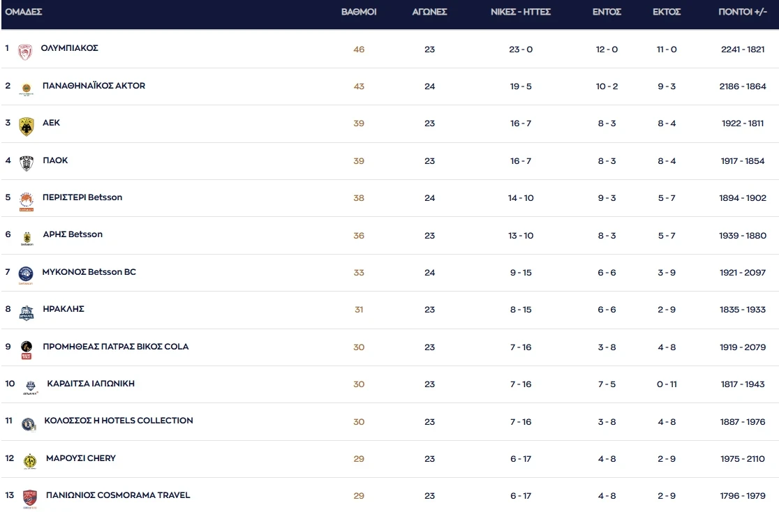 Μπάσκετ Stoiximan GBL: Η τελική βαθμολογία – Υποβιβάζεται ο ΠανιώνιοςΗ κανονική διάρκεια της Stoiximan GBL ολοκληρώθηκε το Σάββατο 25 Απριλίου, μετά από έξι αναμετρήσεις που ξεκαθάρισαν τη μάχη του υποβιβασμού και τις θέσεις της κορυφής. Μετά την ολοκλήρωση των αγώνων, ο Πανιώνιος υποβιβάζεται στην Elite League, έπειτα από την ήττα του από τον Άρη στο Παλέ με 75-65. Ο Παναθηναϊκός επικράτησε εύκολα της Μυκόνου […] 25/04/2026 20:58