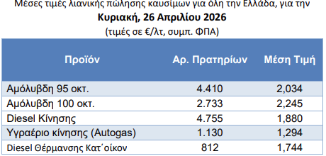 Από την άλλη, στο Diesel κίνησης, η κατάσταση θα ήταν ακόμη χειρότερη αν δεν υπήρχε η κρατική επιδότηση των 20 λεπτών. Με τη βοήθεια αυτή, η μέση τιμή κρατιέται στο 1,88€.