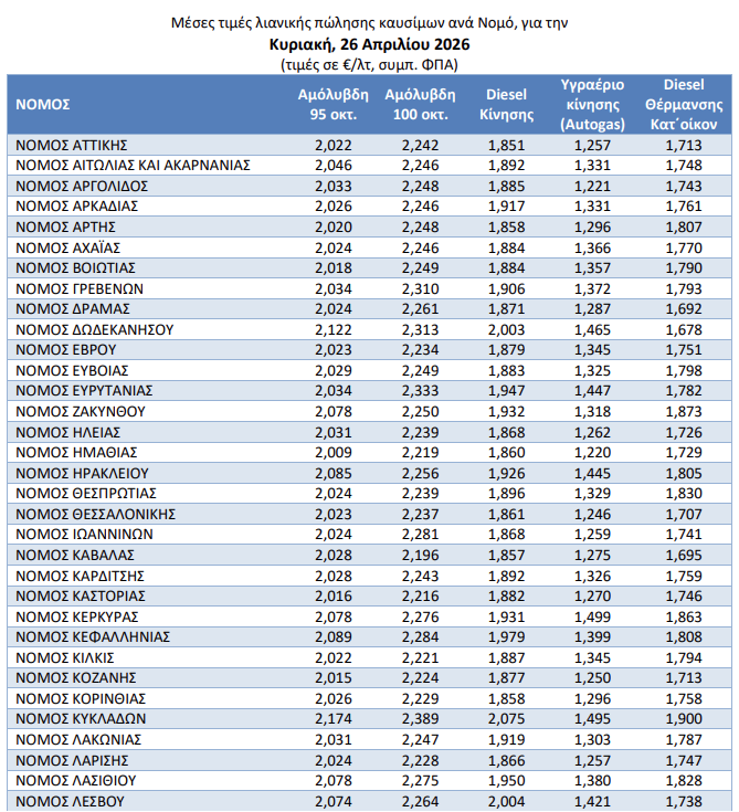 Η αμόλυβδη σταθερά πάνω από 2 ευρώ – Τι γίνεται με το diesel