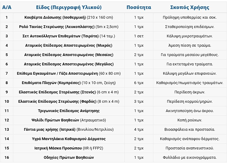 Το φαρμακείο πρέπει να περιλαμβάνει αποκλειστικά και κατ’ ελάχιστον 16 είδη, σύμφωνα με τις νέες προδιαγραφές. Οι οδηγοί καλούνται να μην περιμένουν την τελευταία στιγμή, αλλά να ελέγξουν εγκαίρως τον υπάρχοντα εξοπλισμό τους, διασφαλίζοντας ότι η ασφάλειά τους στον δρόμο συμμορφώνεται με τις πλέον σύγχρονες απαιτήσεις.