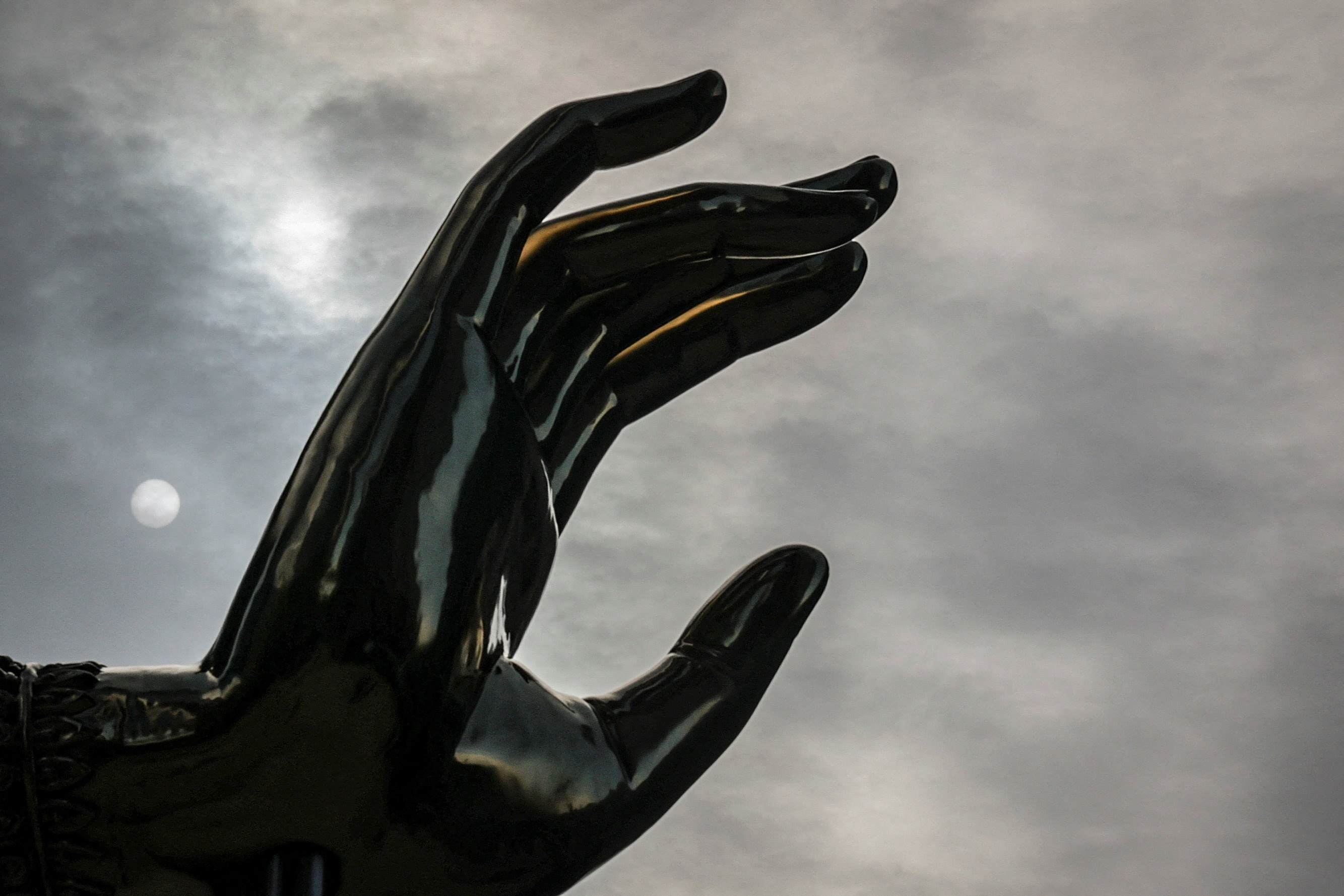 Ο Nguyen δημιούργησε δύο χαλύβδινα χέρια που αιωρούνται ελαφρά μπροστά από τα πέτρινα άκρα, στηριγμένα σε μεταλλικές ράβδους. Οι χειρονομίες τους συμβολίζουν τον ηρωισμό και τη συμπόνια, ενώ έχουν χυτευθεί από λιωμένα βλήματα που προήλθαν από το Αφγανιστάν — μια διαδικασία συνδεδεμένη με την καλλιτεχνική πρακτική του Nguyen να μετατρέπει εκρηκτικά κατάλοιπα του Πολέμου του Βιετνάμ σε φορείς μνήμης και θεραπείας.