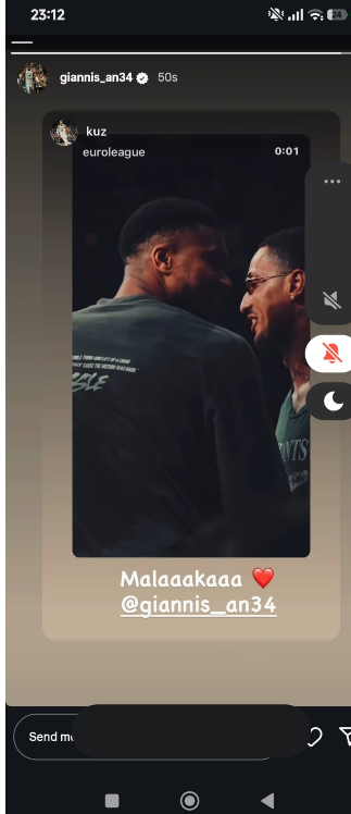 Στο στόρυ που ανέβασε ο Γιάννης μετά τον αγώνα, ο Greek Freak αποκαλεί τον συμπαίκτη του φιλικά «μ@@@@α» ενώ στην φωτογραφία οι δύο τους είναι αγκαλιασμένοι.