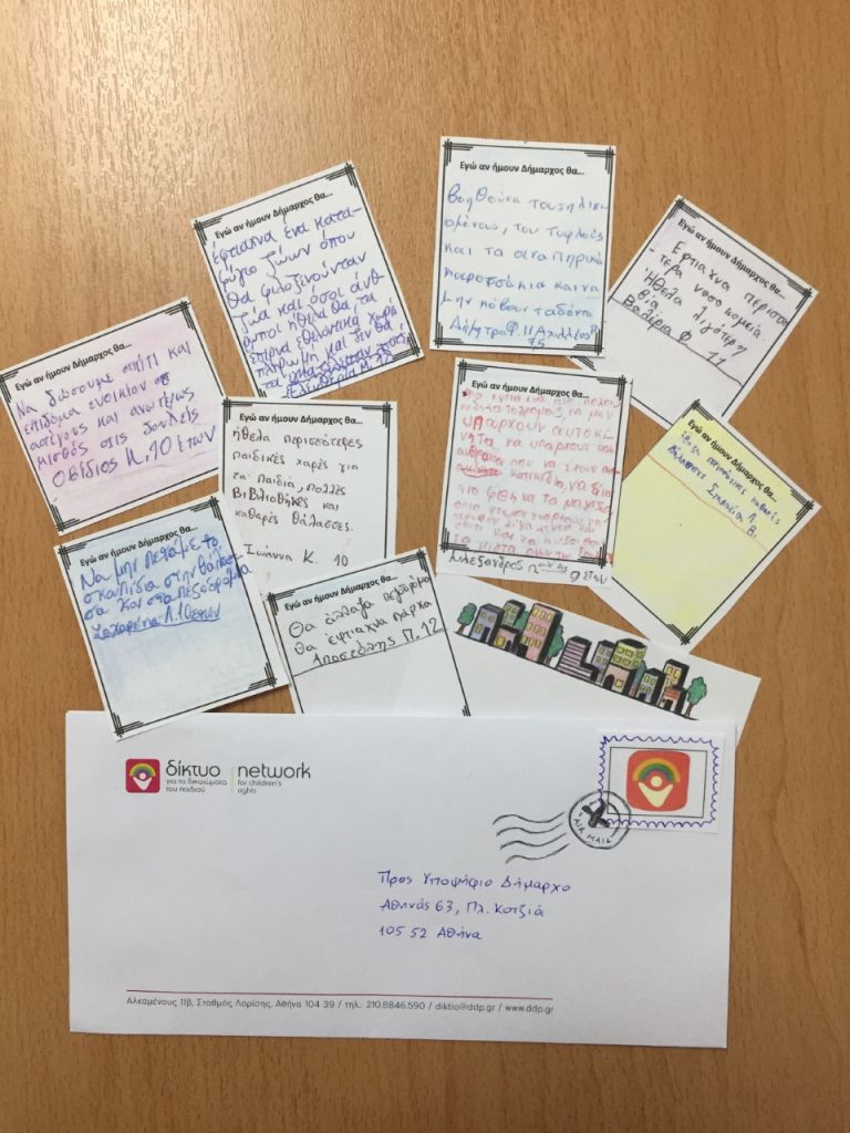 Η πόλη μου Υποψήφιοι δήμαρχοι της Αθήνας καλεσμένοι των παιδιών του ΔικτύουΤα παιδιά του «Δικτύου για τα Δικαιώματα του Παιδιού», με την παραπάνω επιστολή έχουν προσκαλέσει σήμερα στις 6 μ.μ. στο Δίκτυο στην Πλατεία Τράιμπερ (Πλατεία Τράιμπερ 8), στην περιοχή της Πλατείας Βάθης υποψήφιους δημάρχους της Αθήνας με σκοπό να συζητήσουν μαζί τους, να τους πουν τις ιδέες τους αλλά και να τους κάνουν ερωτήσεις σχετικά με την πόλη Μάνος Χαραλαμπάκης 03/05/2019 14:05