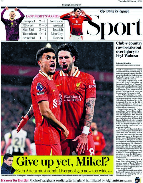 Έντυπη ΈκδοσηΤο πρόγραμμα των πρώτων αγωνιστικώνΜε αντίπαλο την Μπόρνμουθ θα ξεκινήσει την υπεράσπιση του τίτλου της η Λίβερπουλ στο Ανφιλντ, στις 15 Αυγούστου, ενώ η Αρσεναλ θα επισκεφθεί την έδρα της Μάντσεστερ Γιουνάιτεντ δύο ημέρες αργότερα. Στις πρώτες πέντε αγωνιστικές οι Κανονιέρηδες θα αντιμετωπίσουν επίσης τη Λίβερπουλ, τη Νότιγχαμ Φόρεστ, τη Μάντσεστερ Σίτι και τη Νιούκαστλ. Σύμφωνα με την Opta, […] Νασμής Γιώργος Πρώτη Δημοσιεύση:19/06/2025 01:00