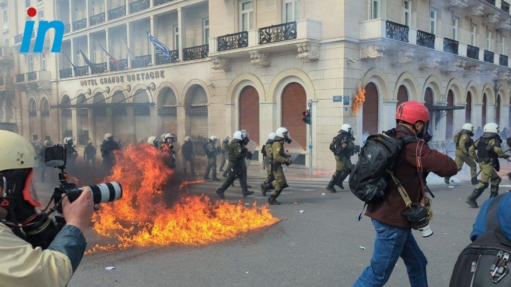Ελλάδα Πεδίο μάχης Σύνταγμα και Προπύλαια μετά τη συγκέντρωση για τα ΤέμπηΤα επεισόδια αρχικά ξεκίνησαν στην κάτω πλευρά της πλατείας Συντάγματος, αλλά γρήγορα επεκτάθηκαν στην πάνω πλατεία αλλά και σε άλλα σημεία του κέντρου της Αθήνας 16/03/2023 13:42