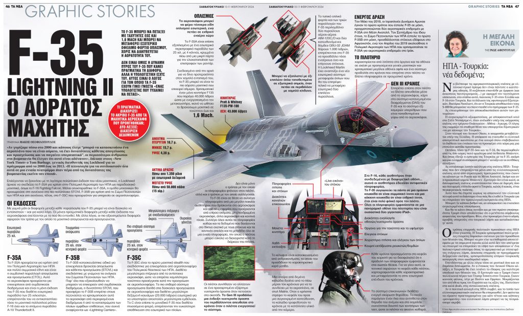Έντυπη ΈκδοσηF-35 Lightning II: Ο αόρατος μαχητής θεοφιλόπουλος Μάκης Πρώτη Δημοσιεύση:10/02/2024 08:00