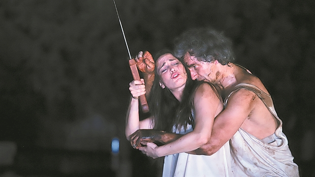 Η μυρωδιά του βρεγμένου χώματος έφτανε από την πλατεία ως τις κερκίδες του Αρχαίου Θεάτρου της Επιδαύρου. Οι χαμηλοί άνυδροι θάμνοι, το τραπέζι, το ματωμένο σεντόνι πάνω στο οποίο ήταν ξαπλωμένος ο Ορέστης και πίσω το σαλόνι ενός σημερινού ίσως σπιτιού οριοθετούσαν τον κόσμο που έπλασε ο Γιάννης Κακλέας (μαζί με την Ηλένια Δουλαρίδη στα σκηνικά και τα κοστούμια) στην παρθενική του εμφάνιση στο Αργολικό Θέατρο για να προσεγγίσει το σπουδαίο έργο του Ευριπίδη σε μετάφραση του Γιώργου Χειμωνά.