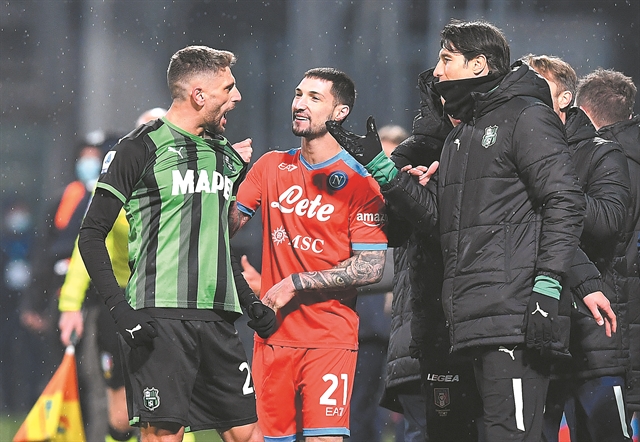 Το VAR έσωσε τη Νάπολι από την ήττα στο πέμπτο λεπτό των καθυστερήσεων στην αναμέτρησή της με τη Σασουόλο (2-2) και τη διατήρησε μόνη πρώτη στην κορυφή της βαθμολογίας της Serie A.