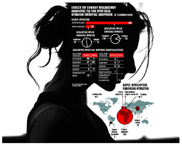 Σύμφωνα με την πρόσφατη έκθεση του Εθνικού Μηχανισμού Αναφοράς και του Εθνικού Κέντρου Κοινωνικής Αλληλεγγύης, «o αριθμός των αναφορών που απεστάλησαν στον ΕΜΑ κατά το α’ εξάμηνο του 2024 αντιστοιχούν σε 189 περιπτώσεις. Οι 160 αφορούν ενήλικα θύματα και οι 29 παιδιά. Από τα παιδιά θύματα, 13 ήταν ασυνόδευτα ανήλικα, εκ των οποίων 8 αγόρια και 5 κορίτσια. Οσον αφορά την ηλικία, η πλειονότητα των ενήλικων θυμάτων είναι κάτω των 25 ετών, ενώ από τα 29 παιδιά τα περισσότερα είναι κάτω των 12 ετών. Τα ασυνόδευτα παιδιά που αναφέρθηκαν είναι άνω των 15 ετών».