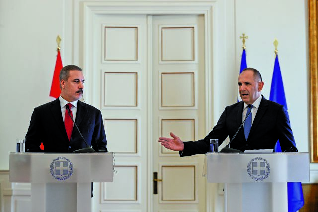 Οι χαμηλές προσδοκίες της ελληνικής διπλωματίας για κάποιο θεαματικό αποτέλεσμα από το ελληνοτουρκικό ραντεβού της Αθήνας επιβεβαιώθηκαν. Και αδιέξοδα διαπιστώθηκαν μέσα από πάγιες, διαμετρικά αντίθετες θέσεις, και δυσκολίες στην πρώτη επιχείρηση «σύγκλισης» απόψεων για την – έτσι κι αλλιώς βαριά και χρονοβόρα – διαδικασία οριοθέτησης ΑΟΖ και υφαλοκρηπίδας. Δεν ήταν ωστόσο μια συνάντηση σαν τις προηγούμενες. Ηταν κομβική, διάρκειας άνω των δύο ωρών, για τη διαμόρφωση της επόμενης ημέρας. Κατ’ αρχάς για τη δυνατότητα, παρά τις διαπιστωμένες αποστάσεις, να παραμείνουν ωφέλιμοι δίαυλοι επικοινωνίας ανάμεσα στις δύο πλευρές του Αιγαίου ενόψει των επαφών κορυφής στις αρχές του 2025 στην Αγκυρα. Δεν επρόκειτο μόνο για την πρώτη φορά που οι υπουργοί Εξωτερικών Γιώργος Γεραπετρίτης και Χακάν Φιντάν διερεύνησαν κατ’ εντολή του Κυριάκου Μητσοτάκη και του Ρετζέπ Ταγίπ Ερντογάν εάν μπορεί να υπάρξει πλαίσιο συζήτησης για τη μοναδική διαφορά που, σύμφωνα με την Αθήνα, μπορεί να φτάσει στη διεθνή δικαιοδοσία, σε αντίθεση με την Αγκυρα η οποία βλέπει «αλληλένδετα» θέματα. Η κρισιμότητά της αφορά το γεγονός ότι σηματοδότησε την εκκίνηση νέας φάσης στα ελληνοτουρκικά με καινούργια στοιχήματα.