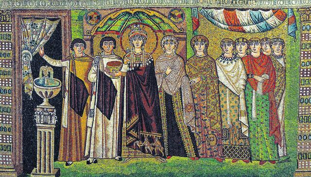 Στα ψηφιδωτά του Αγίου Βιταλίου, ναού του 6ου αιώνα στη Ραβέννα, προβάλλουν αντικριστά η πομπή του βυζαντινού αυτοκράτορα Ιουστινιανού και της αυτοκράτειρας Θεοδώρας. Στους πλευρικούς τοίχους εικονίζονται δύο περίφημες και μεγαλοπρεπείς συνθέσεις με τις αυτοκρατορικές προσφορές του Ιουστινιανού και της Θεοδώρας προς τον ναό. Αριστερά παριστάνεται ο Ιουστινιανός, συνοδευόμενος από τον αρχιεπίσκοπο της πόλης Μαξιμιανό και την ακολουθία του, να προσκομίζει χρυσό δίσκο και δεξιά η αυτοκράτειρα με τις γυναίκες της συνοδείας της να προσφέρει χρυσή διάλιθη κύλικα. Η καλλιτεχνική αρτιότητα των ψηφιδωτών και το σύνολο του διακόσμου του ναού έδωσαν το έναυσμα στον ιταλό διευθυντή του Ινστιτούτου Polimoda, Μασιμιλιάνο Τζορνέτι, να στηρίξει την ιδέα του για τις απαρχές του Made in Italy και να επιμεληθεί μια έκθεση μόδας συνδέοντας τις δημιουργίες των ιταλών σχεδιαστών Armani, Ferré, Valentino, Versace, Capucci, Dolce e Gabbana, Krizia, Gucci και Romeo Gigli με παραδείγματα της βυζαντινής τέχνης της εποχής του Ιουστινιανού. Είκοσι φορέματα και μοναδικά αξεσουάρ από τη δεκαετία του ’60 έως και το 2020 συνθέτουν την έκθεση «Byzantium – Ravenna. Icons of Italian Fashion» που φιλοξενείται στο Βυζαντινό και Χριστιανικό Μουσείο και τελεί υπό την αιγίδα του Εθνικού Επιμελητηρίου Ιταλικής Μόδας.