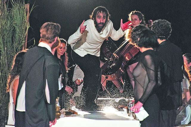 Σκηνή από την «Οδύσσεια Ζ-Η-Θ / Ο ξένος» σε σκηνοθεσία Μιχαήλ Μαρμαρινού που θα παρουσιαστεί στο αρχαίο θέατρο Φιλίππων στις 9 Αυγούστου