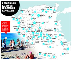 Είναι ενδεικτικό ότι το καλοκαίρι του 2024 οι καταγγελίες ξεπέρασαν τις 10.000 και αφορούσαν κυρίως υπερβάσεις παραχωρήσεων ή αυθαίρετη κατάληψη αιγιαλού, με τις Κυκλάδες, τη Χαλκιδική, την Πρέβεζα, τα Δωδεκάνησα και την Ανατολική Αττική να έχουν την «τιμητική» τους, με μετρημένες επιχειρήσεις να δέχονται πρόστιμα και ελάχιστες να σφραγίζονται. Από αυτές τις καταγγελίες περισσότερες από 1.000 ήταν επώνυμες από ιδιώτες ή φορείς.