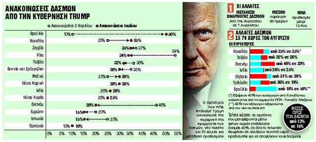 Οι εκτιμήσεις περιπλέκονται καθώς ο Τραμπ άλλαξε τα δεδομένα, με νέους δασμούς για 70 χώρες και μετάθεση της εφαρμογής των δασμών που είχαν συμφωνηθεί με την ΕΕ. Με τις αλλαγές σε 70 χώρες, ο μέσος όρος των δασμών στις ΗΠΑ θα ανέβει από 13% σε περίπου 15%. Παράλληλα, την παραμονή το απόγευμα, πριν από την 1η Αυγούστου, όταν θα ίσχυε η εφαρμογή των δασμών, μετέθεσε την ημερομηνία για τις 7 Αυγούστου (και για την ΕΕ). Το Μεξικό πήρε νέα προθεσμία 90 ημερών για να συμφωνήσει με τις ΗΠΑ. Με την Κίνα οι διαπραγματεύσεις συνεχίζονται. Η εκεχειρία στους δασμούς λήγει στις 12 Αυγούστου.