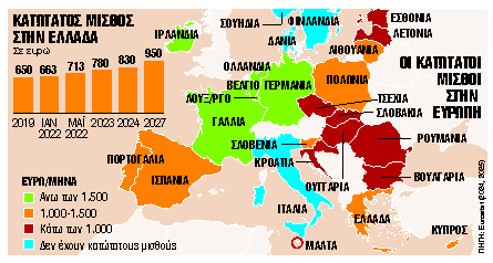 Σύμφωνα με στοιχεία της Eurostat, οι ακαθάριστοι εθνικοί κατώτατοι μισθοί αυξήθηκαν μεταξύ Ιουλίου 2024 και Ιουλίου 2025 σε 21 από τα 22 κράτη-μέλη της ΕΕ που έχουν εθνικό κατώτατο μισθό, με την Κύπρο να αποτελεί τη μόνη εξαίρεση, όπου ο κατώτατος μισθός παρέμεινε αμετάβλητος. Σημαντικές ονομαστικές αυξήσεις των εθνικών κατώτατων μισθών καταγράφηκαν στα περισσότερα κράτη-μέλη της Κεντρικής και Ανατολικής Ευρώπης, όπως στην Κροατία (15,5%), στη Βουλγαρία (15,5%), στη Λιθουανία (12,3%), στην Τσεχία (11,4%) και στην Πολωνία (10,2%). Αντίθετα, οι μικρότερες ονομαστικές αυξήσεις σημειώθηκαν στη Σλοβενία (1,9%), στο Βέλγιο (2,0%) και στη Γαλλία (2,0%). Ικανοποιητικές ήταν και οι αυξήσεις στις χώρες του Νότου, όπως στην Ελλάδα (6,1%), στην Πορτογαλία (6,1%) και την Ισπανία (4,4%), αλλά και στις βορειοκεντρικές χώρες, όπως στη Γερμανία (5,2%), στην Ολλανδία (5,2%), στο Λουξεμβούργο (5,2%) και στην Ιρλανδία (6,3%). Οι αυξήσεις αυτές είχαν ως αποτέλεσμα την ενίσχυση της αγοραστικής δύναμης των εργαζομένων που αμείβονται με τον εθνικό κατώτατο μισθό στις περισσότερες χώρες, μεταξύ αυτών και στην Ελλάδα.