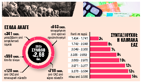 Μαξιλάρι ύψους 17 δισ. ευρώ έχει δημιουργηθεί στον κουμπαρά του Ασφαλιστικού, στο Ασφαλιστικό Κεφάλαιο Αλληλεγγύης Γενεών (ΑΚΑΓΕ), το οποίο δημιουργήθηκε και συντηρείται κατά κύριο λόγο από τις μηνιαίες εισφορές των συνταξιούχων άνω των 1.400 ευρώ, μέσω της ΕΑΣ (Εισφορά Αλληλεγγύης Συνταξιούχων), η οποία επιβάλλεται κλιμακωτά και κυμαίνεται από 3% έως 14%.