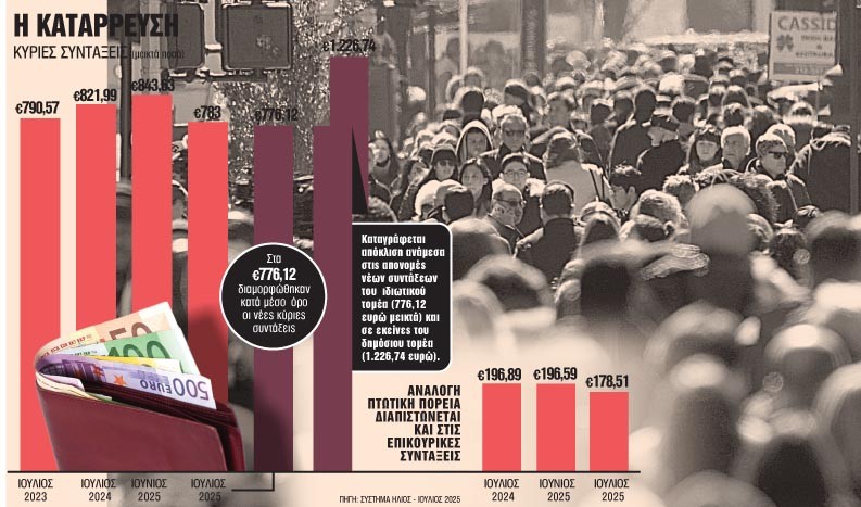 Η ωρίμαση του νόμου Κατρούγκαλου σε συνδυασμό με την υποχώρηση των μισθών κατά τη 10ετή οικονομική κρίση δημιούργησαν συνθήκες δραματικής συρρίκνωσης των συντάξεων.