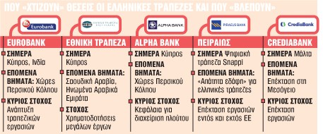 Προς ανατολάς έχουν στρέψει το βλέμμα τους οι ελληνικές τράπεζες, που ύστερα από περισσότερα από 15 χρόνια έχουν περάσει σε φάση επέκτασης. Με τα βασικά επιτόκια στο 2% για το επόμενο διάστημα, τα περιθώρια κέρδους των τραπεζών είναι μικρότερα, γι’ αυτό και οι συστημικές έχουν θέσει ως κεντρικό στόχο την επέκτασή τους εντός όσο και εκτός Ελλάδος, με στόχο να πολλαπλασιάσουν τις πηγές εσόδων τους.