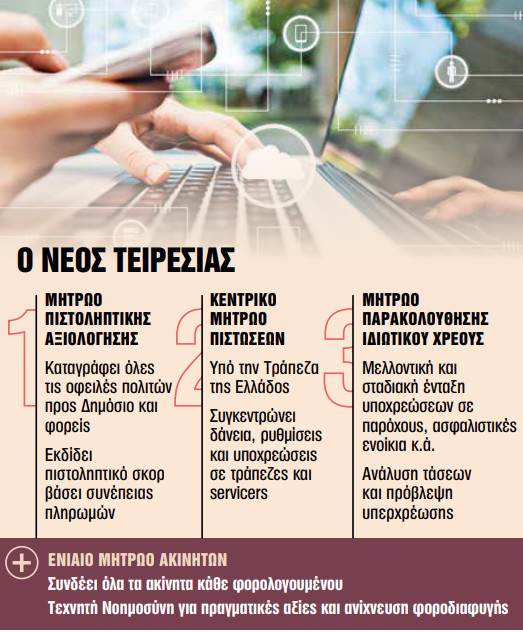Μητρώο Παρακολούθησης Ιδιωτικού Χρέους (ΜΠΙΧ): Το ΜΠΙΧ θα αποτελέσει ένα διαλειτουργικό μητρώο-ομπρέλα για τα δύο προαναφερθέντα, με στόχο να διαμορφώνει το πλήρες προφίλ κάθε οφειλέτη.