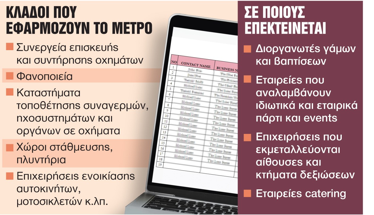 Στο μικροσκόπιο θα βρεθούν το επόμενο διάστημα διοργανωτές γάμων και βαπτίσεων, εταιρείες που αναλαμβάνουν ιδιωτικά και εταιρικά πάρτι και events, επιχειρήσεις που εκμεταλλεύονται αίθουσες και κτήματα δεξιώσεων, αλλά και οι εταιρείες catering. Το νέο πλαίσιο προβλέπει ότι κάθε πελάτης που κλείνει υπηρεσία ή χρησιμοποιεί εγκατάσταση πρέπει να καταχωρίζεται στο ψηφιακό πελατολόγιο και τα στοιχεία του να αποστέλλονται αυτόματα στην ΑΑΔΕ.