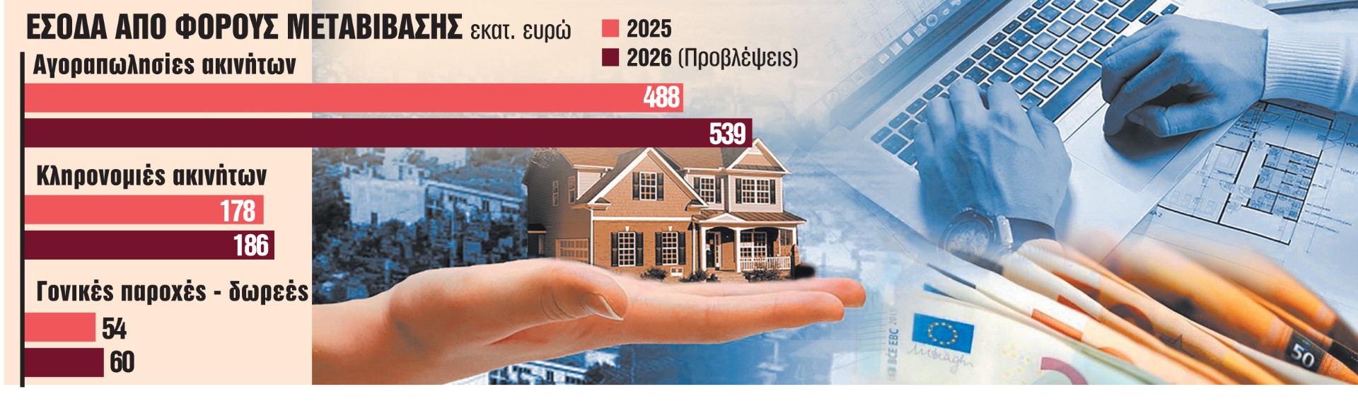 - Τη μεταβίβαση στον εργολάβο από τον οικοπεδούχο, λόγω εκτέλεσης εργολαβικού προσυμφώνου, ιδανικού μεριδίου οικοπέδου.
