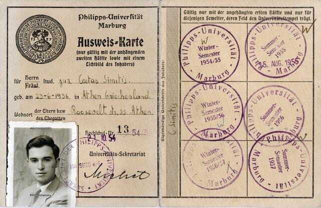 Η φοιτητική ταυτότητα του Κώστα Σημίτη το 1954 στη Γερμανία όπου σπούδαζε