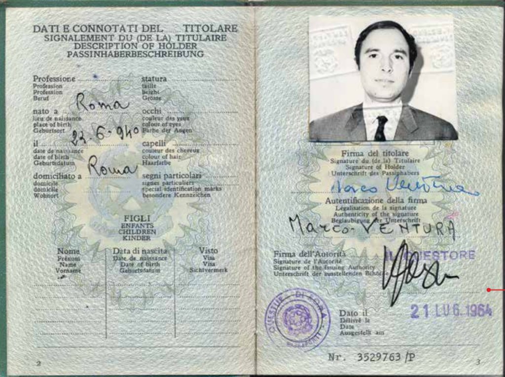 Το πλαστό ιταλικό διαβατήριο του Κώστα Σημίτη για να μπορέσει να διαφύγει τη σύλληψη ως Marco Ventura