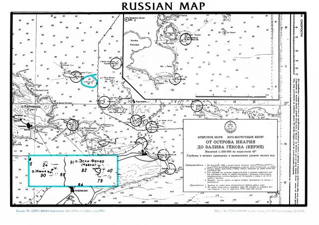 Ρωσικός χάρτης της ευρύτερης περιοχής των Ιμίων. Πρώτη έκδοση, 24.8.74 νέα έκδοση 12.2.94