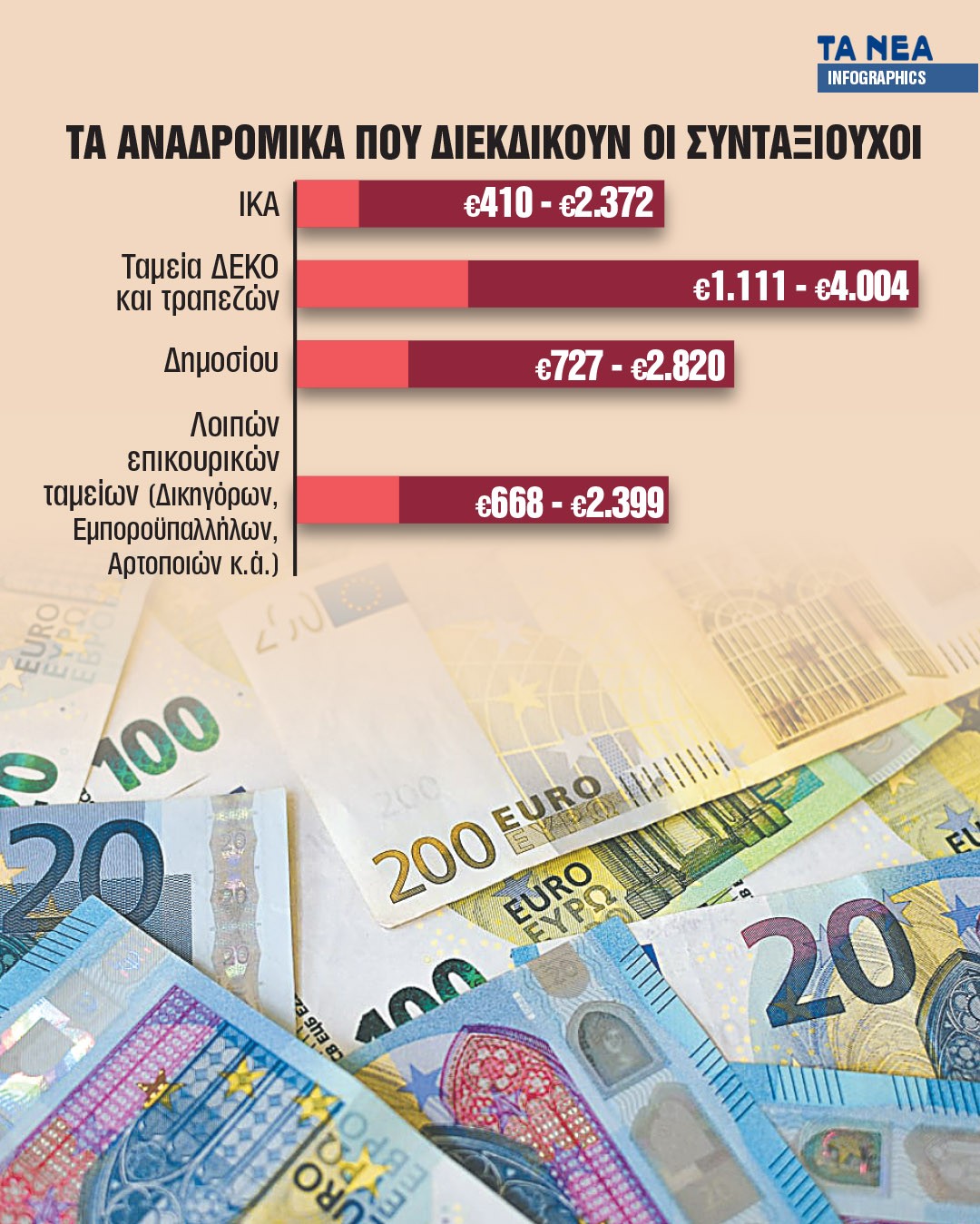 Τα αναδρομικά δικαιούνται περίπου 370.000 συνταξιούχοι που είχαν προσφύγει στη Δικαιοσύνη και κερδίζουν στα Πρωτοδικεία, αφού ο ΕΦΚΑ δεν ασκεί εφέσεις.