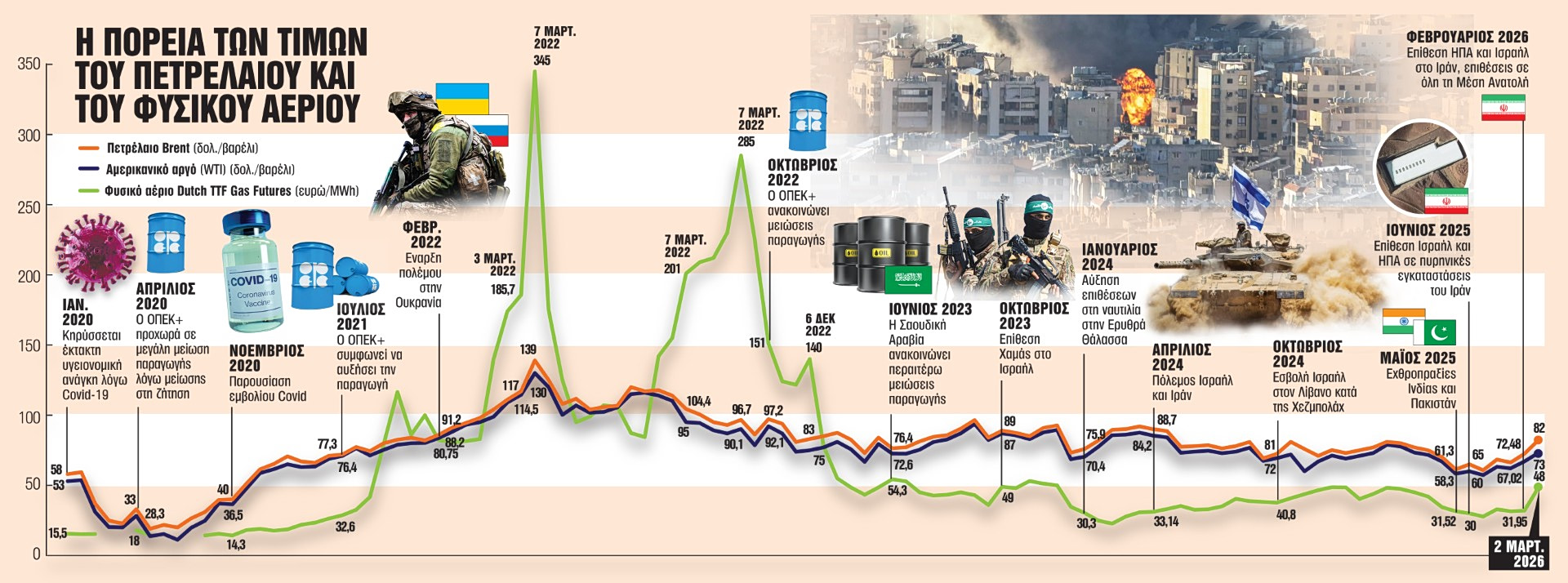 Ειδικά από το 2020 και μετά, λόγω των εξελίξεων οι τιμές του πετρελαίου και του φυσικού αερίου να έχουν καταγράψει πολλά άλματα, με μεγάλα χαμένα τα νοικοκυριά. Από την έναρξη της επίθεσης ΗΠΑ – Ισραήλ στο Ιράν στις 28 Φεβρουαρίου και την απάντηση της Τεχεράνης με χτυπήματα σε άλλες γειτονικές χώρες καταγράφεται πλέον ακόμη ένα ράλι στην ενέργεια που απειλεί να εκτροχιάσει προσωπικούς προϋπολογισμούς, αλλά και δημοσιονομικά και νομισματικά πλάνα.