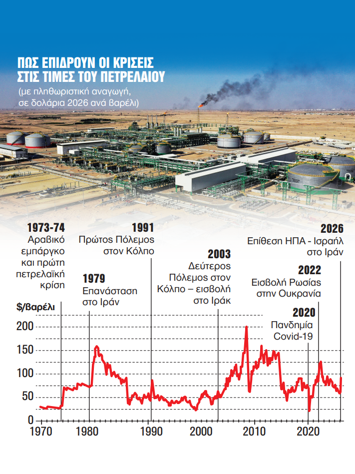 Το σίγουρο είναι, λοιπόν, ότι η εικόνα αλλάζει ανά πάσα στιγμή και εφησυχασμός δεν δικαιολογείται – ούτε στις αγορές, ούτε και στις κυβερνήσεις, οι οποίες καλούνται να διαχειριστούν μία ακόμη ενεργειακή κρίση, χωρίς καν να έχει σβήσει ο απόηχος από τις προηγούμενες. Η εμπειρία, άλλωστε, όπως αποτυπώνεται και στα σχετικά γραφήματα, δεν αφήνει περιθώρια παρερμηνειών αναφορικά με τον κανόνα: Οι μεγάλες γεωπολιτικές αναταράξεις συνοδεύονται πάντα από αντίστοιχες ενεργειακές, οι οποίες πλήττουν άμεσα και σφοδρά ακόμη και εκείνα τα κράτη που βρίσκονται αρκετά μακριά από τις εμπόλεμες ζώνες.