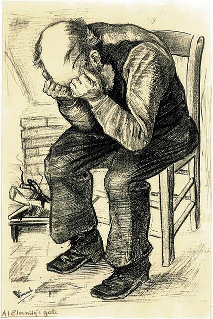 «Στην πύλη της αιωνιότητας». Αυτό τον τίτλο έδωσε ο Βίνσεντ βαν Γκογκ σε ένα έργο του, αρχικά μια λιθογραφία, σχεδιάζοντας έναν ηλικιωμένο άνδρα, τρόφιμο γηροκομείου της Χάγης. Ο Βαν Γκογκ απεικονίζει τον 72χρονο Αντριάνους Τζουίντερλαντ με φαβορίτες που κρατά στις γροθιές του το σκυμμένο κεφάλι του, τον Νοέμβριο 1882. Το σχέδιο αυτό, αφού άλλαξε χέρια στο πέρασμα των αιώνων, σήμερα βρίσκεται στους υπόγειους χώρους του Μουσείου Σύγχρονης Τέχνης της Τεχεράνης, προφυλαγμένο – για την ώρα – από τους βομβαρδισμούς και στο εξής φορτισμένο με νέους συμβολισμούς μετά το ξέσπασμα του πολέμου στη Μέση Ανατολή.