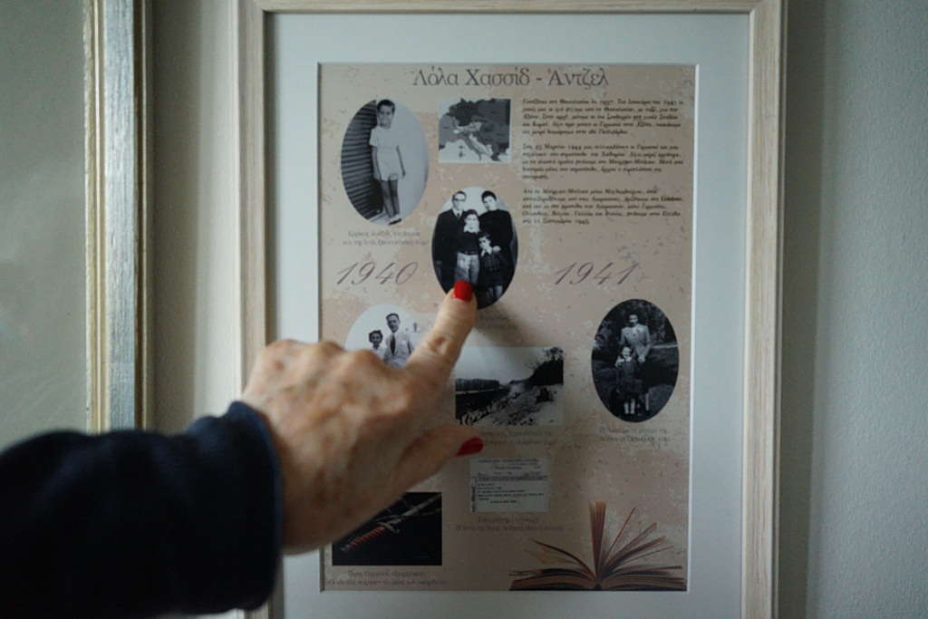 Το σπίτι της αποτελεί ένα ζωντανό μουσείο. Σε έναν τοίχο έχει φωτογραφίες των προγόνων της, ενώ στον απέναντι των παιδιών, των εγγονιών και των δισέγγονών της. Σε άλλο σημείο έχει κορνιζάρει ολόκληρο το γενεαλογικό δέντρο της οικογένειας. Η αριστερή και πάνω δεξιά πλευρά είναι γεμάτη φωτογραφίες. Κάτω δεξιά όμως είναι κενό. «Εδώ είναι το Ολοκαύτωμα», λέει δείχνοντάς το.