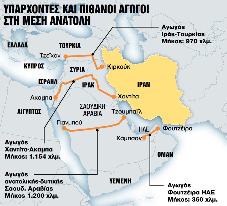 Η τρέχουσα σύγκρουση έχει υπογραμμίσει τη στρατηγική αξία του αγωγού Ανατολής – Δύσης της Σαουδικής Αραβίας, μήκους 1.200 χιλιομέτρων. Κατασκευασμένος τη δεκαετία του 1980 λόγω φόβων ότι ο «πόλεμος των δεξαμενόπλοιων» Ιράν – Ιράκ θα έκλεινε τα Στενά, αποτελεί πλέον μια βασική σανίδα σωτηρίας, μεταφέροντας 7 εκατομμύρια βαρέλια πετρελαίου την ημέρα στο λιμάνι Γιανμπού της Ερυθράς Θάλασσας, παρακάμπτοντας πλήρως το Ορμούζ. «Εκ των υστέρων, ο αγωγός Ανατολής – Δύσης μοιάζει με μια ιδιοφυή αριστουργηματική κίνηση», δήλωσε ανώτερο στέλεχος ενέργειας του Κόλπου. Τώρα το βασίλειο εξετάζει πώς μπορεί να εξάγει περισσότερα από τα 10,2 εκατομμύρια βαρέλια ημερήσιας παραγωγής του μέσω αγωγών, αντί μέσω των ιρανικών υδάτων. Και παράλληλα αναβιώνουν οι συζητήσεις για αγωγούς σε όλη την περιοχή, που έχουν καθυστερήσει λόγω του υψηλού κόστους και της πολυπλοκότητας του εγχειρήματος.