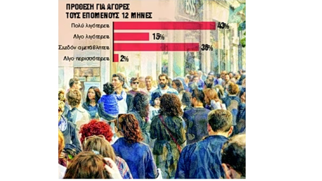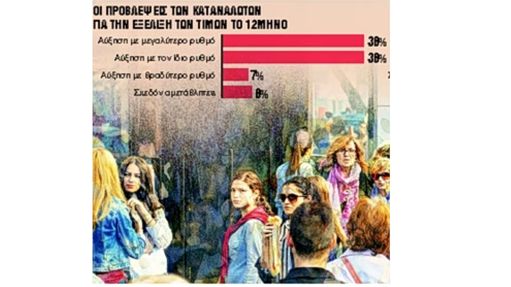 Οι περισσότεροι από τέσσερις στους δέκα (43%) αναφέρουν ότι θα προχωρήσουν σε λιγότερες αγορές τους επόμενους δώδεκα μήνες ενώ το 76% των νοικοκυριών προβλέπει άνοδο των τιμών με ίδιο ή και με ταχύτερο ρυθμό τους επόμενους μήνες.