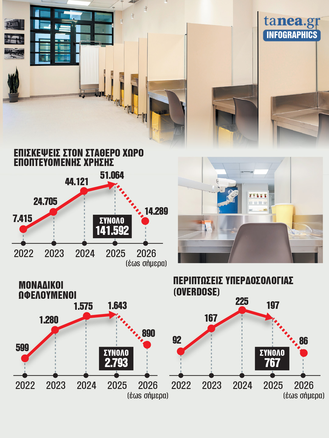 «Ο πρώτος Χώρος Εποπτευόμενης Χρήσης (ΧΕΧ) στην Ελλάδα κλείνει τέσσερα χρόνια αδιάλειπτης λειτουργίας και παροχής υπηρεσιών σε ωφελούμενους ενεργούς χρήστες ψυχοδραστικών ουσιών, από όταν άνοιξε τις πόρτες του για να καλύψει πραγματικές ανάγκες ευάλωτων εξαρτημένων ατόμων στην Αθήνα. Οι ΧΕΧ διεθνώς αποτελούν μία βέλτιστη πρακτική για την ασφαλή εποπτευόμενη χρήση και την αντιμετώπιση περιστατικών υπερδοσολογίας με ή χωρίς τη χορήγηση ναλοξόνης, παρέχοντας παράλληλα πρωτοβάθμια φροντίδα υγείας και ψυχοκοινωνική υποστήριξη, περιορίζοντας τη μετάδοση του HIV/HCV και άλλων μεταδιδόμενων νόσων, και καλύπτοντας βασικές βιοτικές ανάγκες», τονίζει στα «ΝΕΑ» ο Εθνικός Συντονιστής για την Αντιμετώπιση των Εξαρτήσεων της Ελλάδας, Αθανάσιος Θεοχάρης.