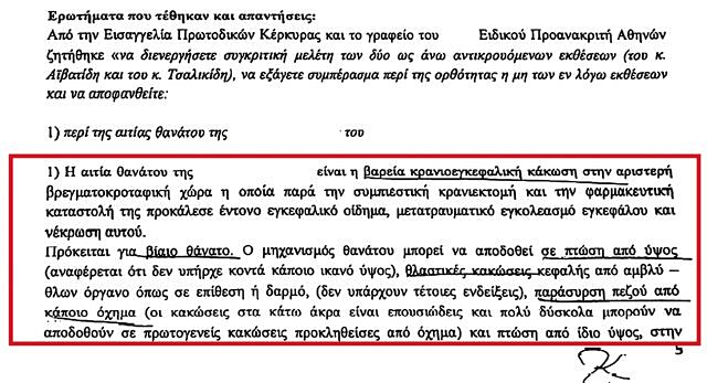 Σημειώνεται ότι την εκδοχή του τροχαίου ατυχήματος υποστήριξε μόνον ένας ιατροδικαστής – πραγματογνώμονας που ελέγχεται, ύστερα από καταγγελίες ότι είχε ζητήσει χρήματα από οικείους του θύματος για να προχωρήσει στη σχετική γνωμάτευση.