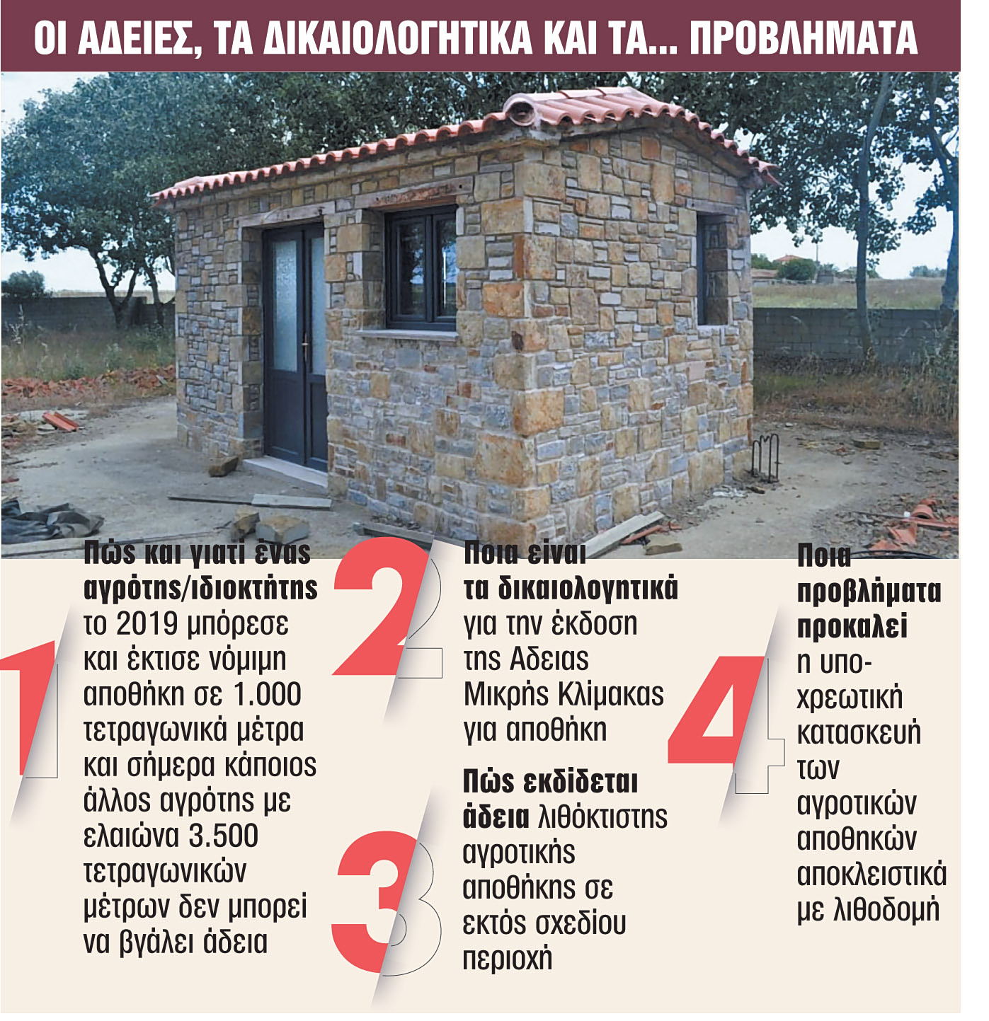 Ποια προβλήματα προκαλεί η υποχρεωτική κατασκευή των αγροτικών αποθηκών με λιθοδομή;