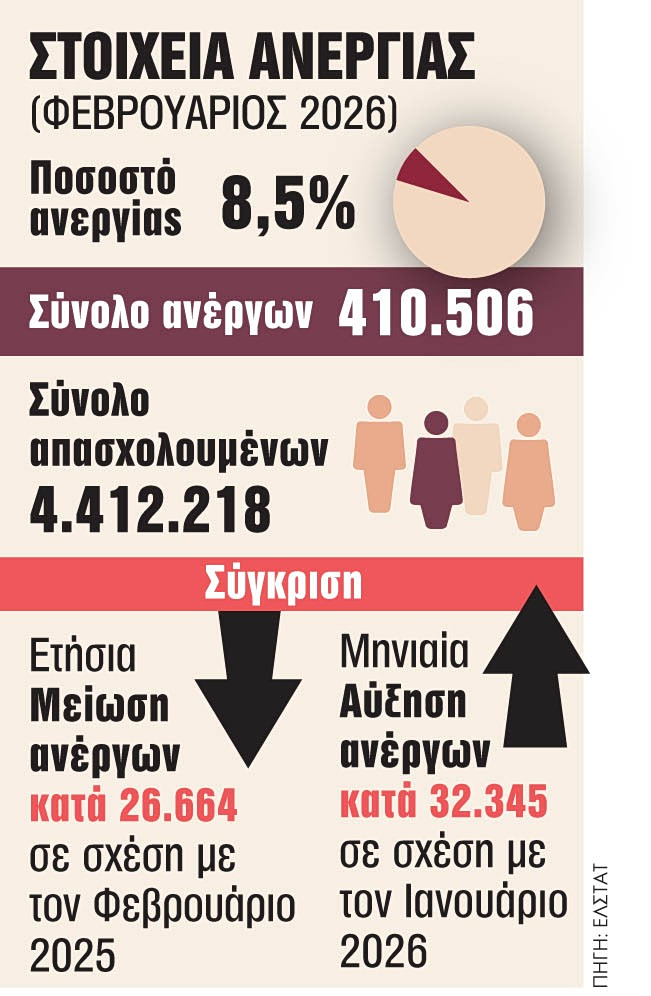 Την ίδια ώρα, τα στοιχεία δείχνουν ότι η κάλυψη των ανέργων παραμένει περιορισμένη. Από περίπου 903.928 εγγεγραμμένους ανέργους στη ΔΥΠΑ, μόλις 258.684 λαμβάνουν επίδομα, δηλαδή λιγότεροι από τρεις στους δέκα.